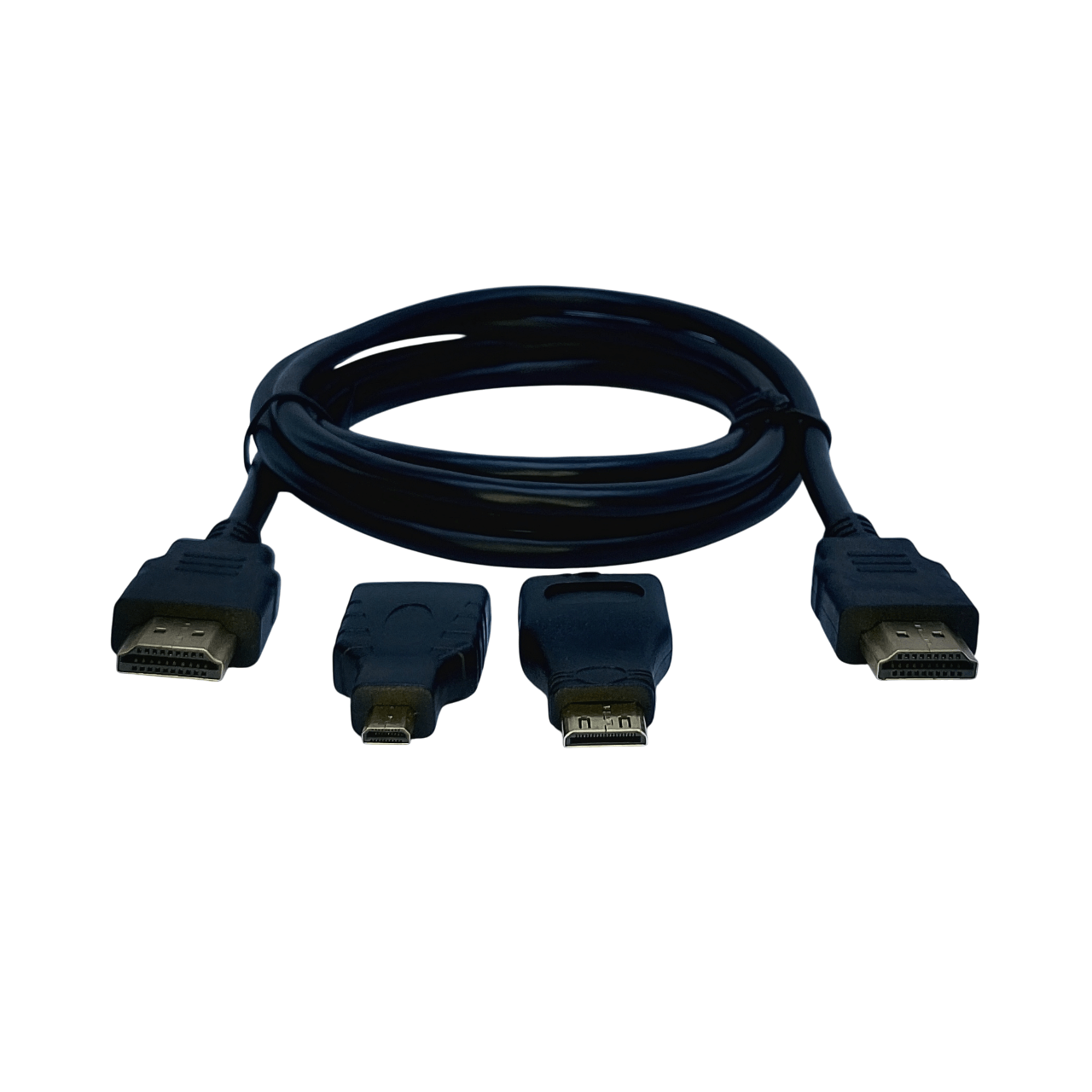O cabo HDTV 4 em 1 é uma solução versátil para conectar diversos dispositivos a TVs, monitores e projetores. Com 1,5 metros de comprimento e adaptadores para Mini HDMI e Micro HDMI, permite a conexão de notebooks, câmeras, tablets e smartphones.